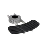 Large 20″ x 7″ platform slides 8″ in and out. Easy height adjustment. Polyboard platform with grooves. Aluminum mounting collar with black krinkle finish and a plastic bushing to fit 4″ diameter pedestals.
