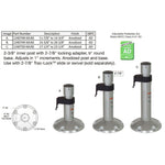 2-3/8″ inner post with 2-7/8″ locking adapter, 9″ round base. Adjusts in 1 inch increments. Anodized post and base. Use with 2-7/8″ Trac-Lock™ slide or swivel (sold separately)